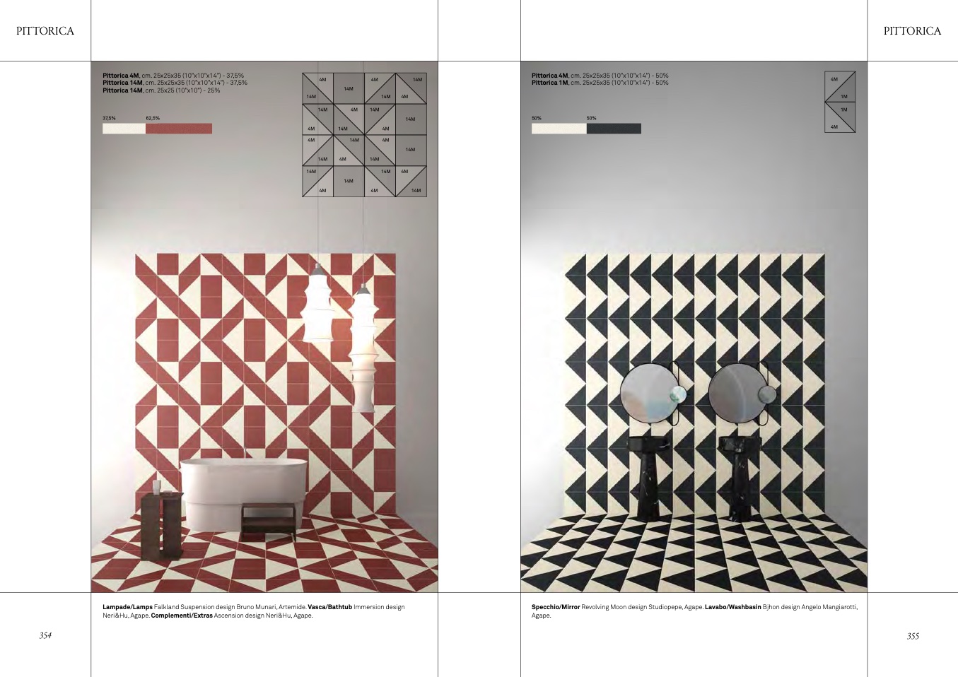 Lampade/Lamps Falkland Suspension design Bruno Munari, Artemide. Vasca/Bathtub Immersion design