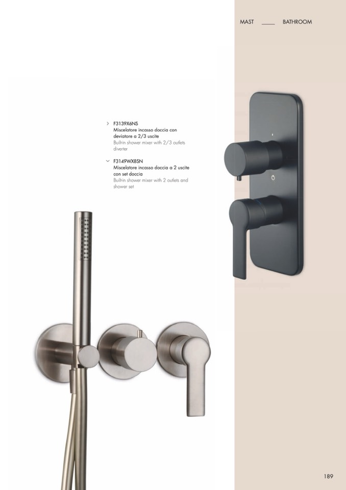 Built-in shower mixer with 2/3 outlets