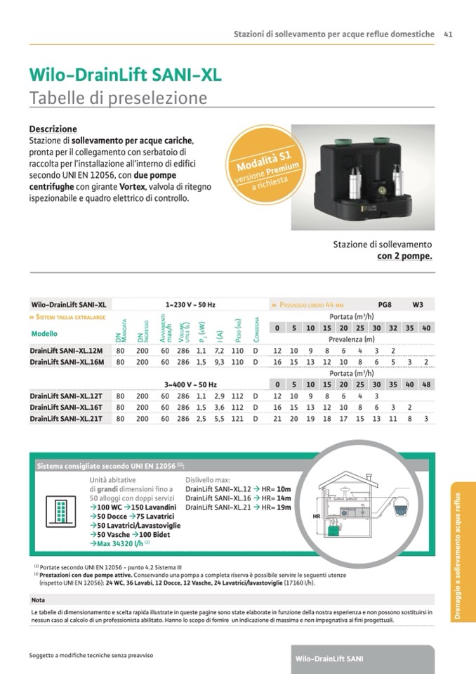 Le tabelle di dimensionamento e scelta rapida illustrate in queste pagine sono state elaborate in funzione della nostra esperienza e non possono sostituirsi in