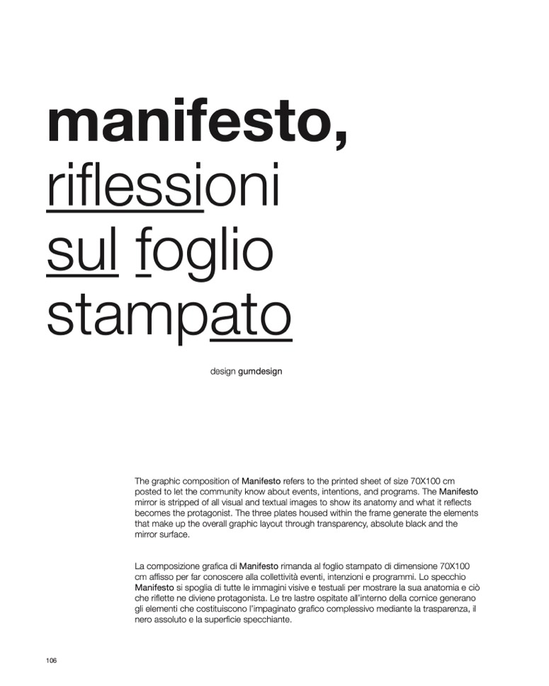 The graphic composition of Manifesto refers to the printed sheet of size 70X100 cm