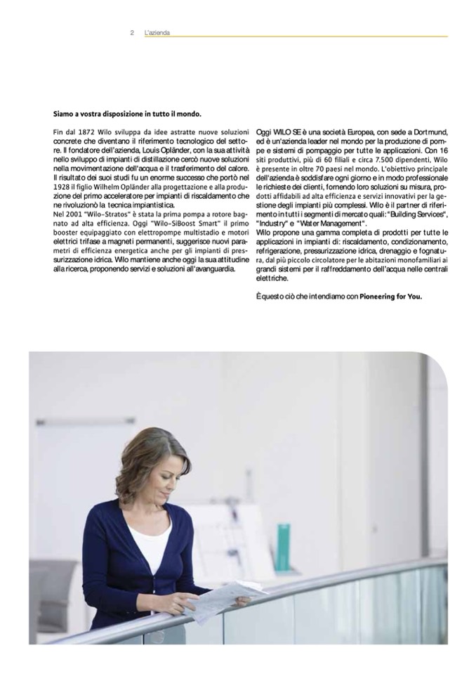 stione degli impianti più complessi. Wilo è il partner di riferi-
