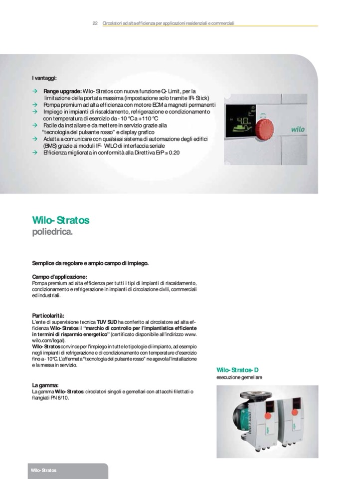 cienza Wilo-Stratos il “marchio di controllo per l’impiantistica efciente