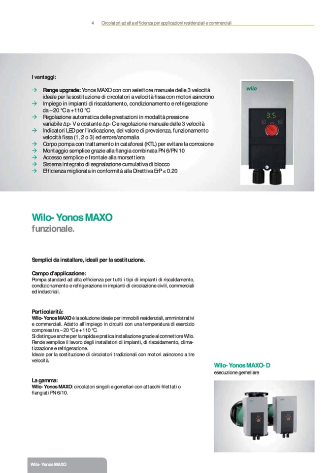 Wilo-Yonos MAXO: circolatori singoli e gemellari con attacchi lettati o