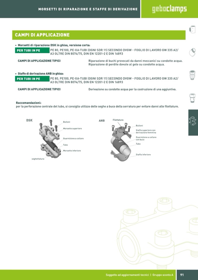 MORSETTI DI RIPARAZIONE E STAFFE DI DERIVAZIONE