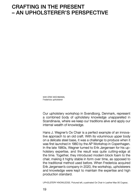 UPHOLSTERY KNOWLEDGE. Pictured left, a patinated Ox Chair in Leather Max 95 Cognac.