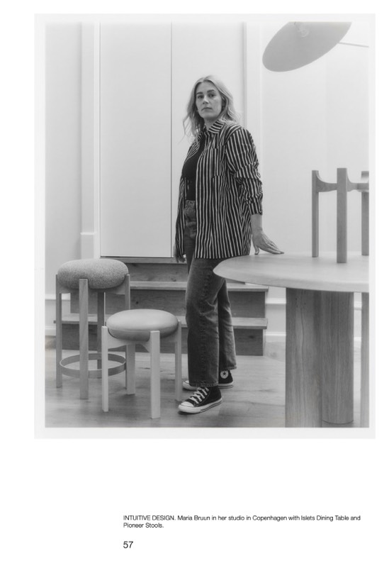 INTUITIVE DESIGN. Maria Bruun in her studio in Copenhagen with Islets Dining Table and