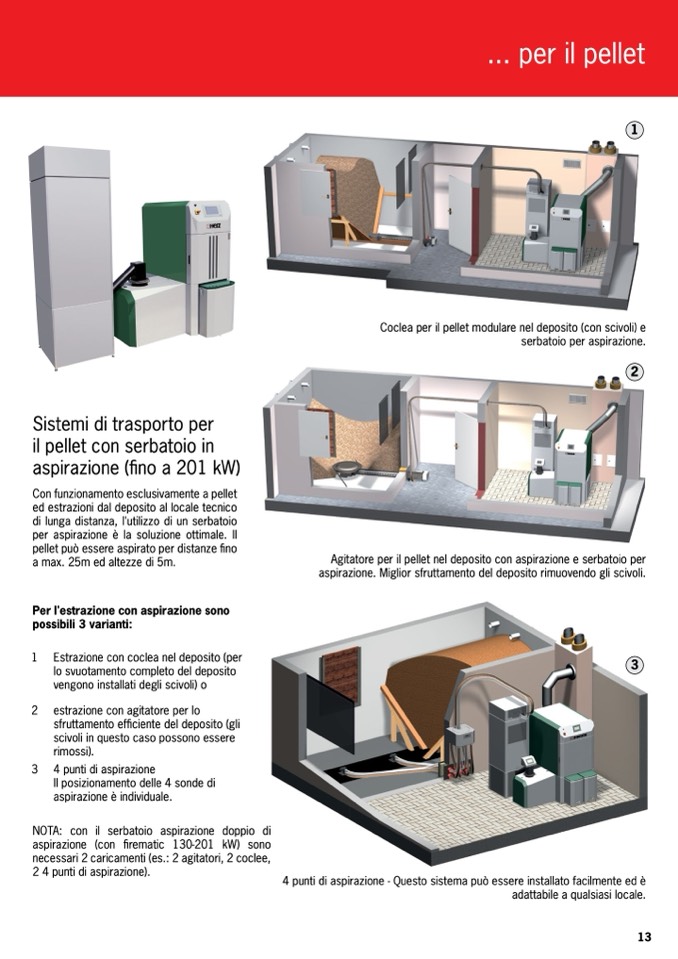 Coclea per il pellet modulare nel deposito (con scivoli) e