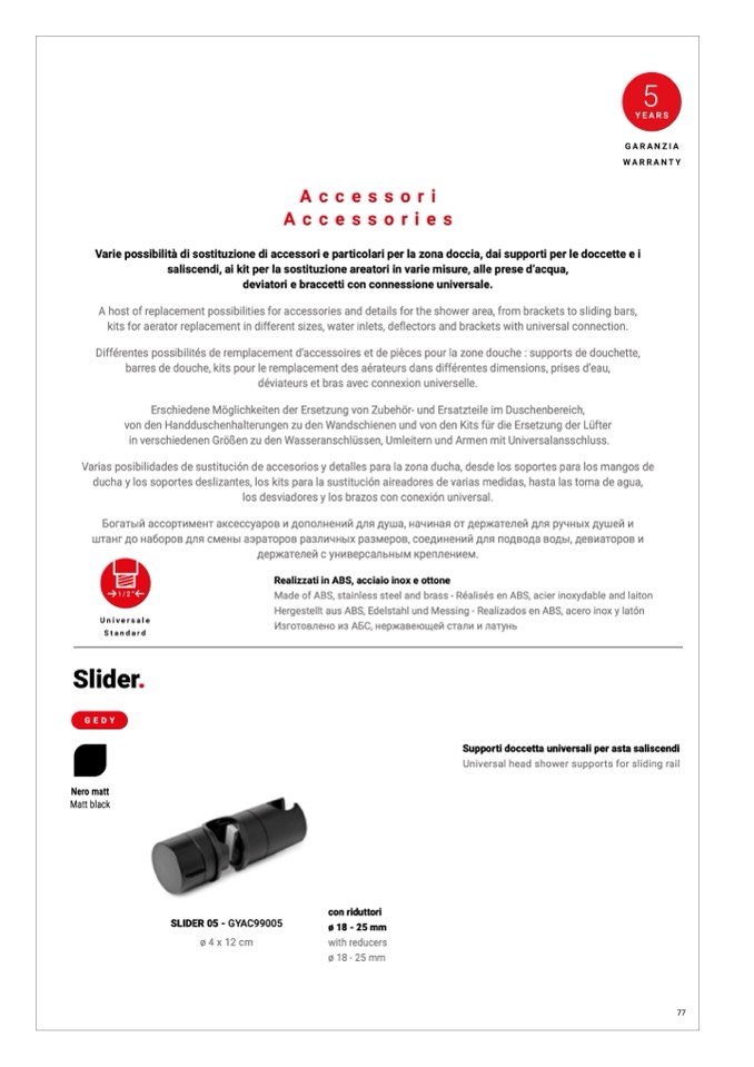 Varie possibilità di sostituzione di accessori e particolari per la zona doccia, dai supporti per le doccette e i