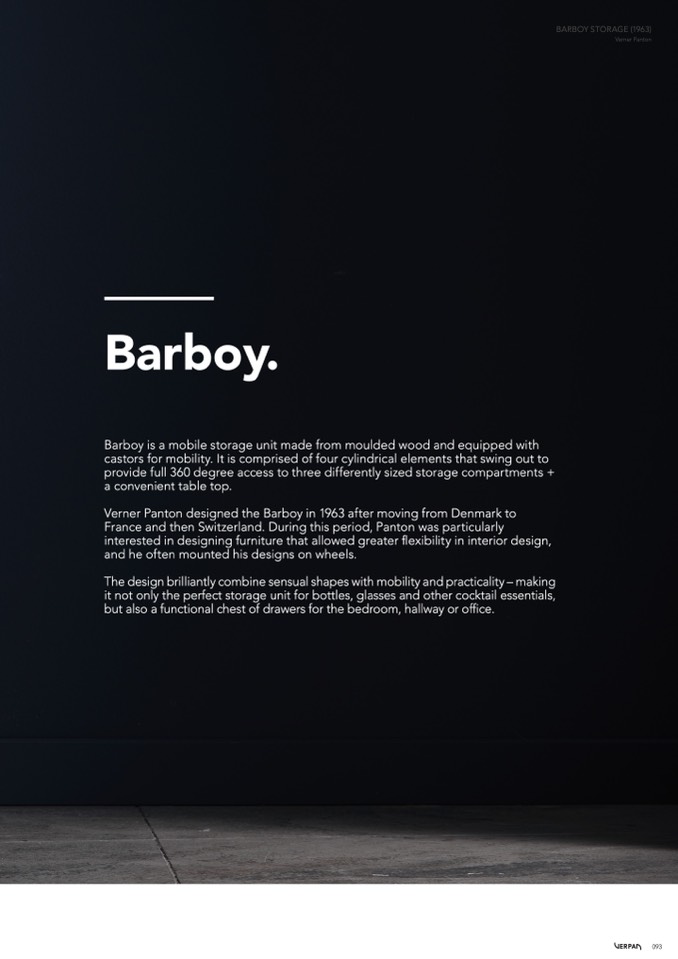 Verner Panton designed the Barboy in 1963 after moving from Denmark to