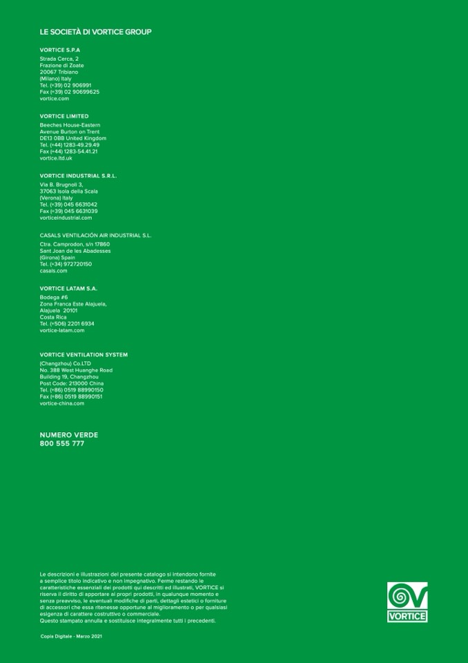 caratteristiche essenziali dei prodotti qui descritti ed illustrati, VORTICE si