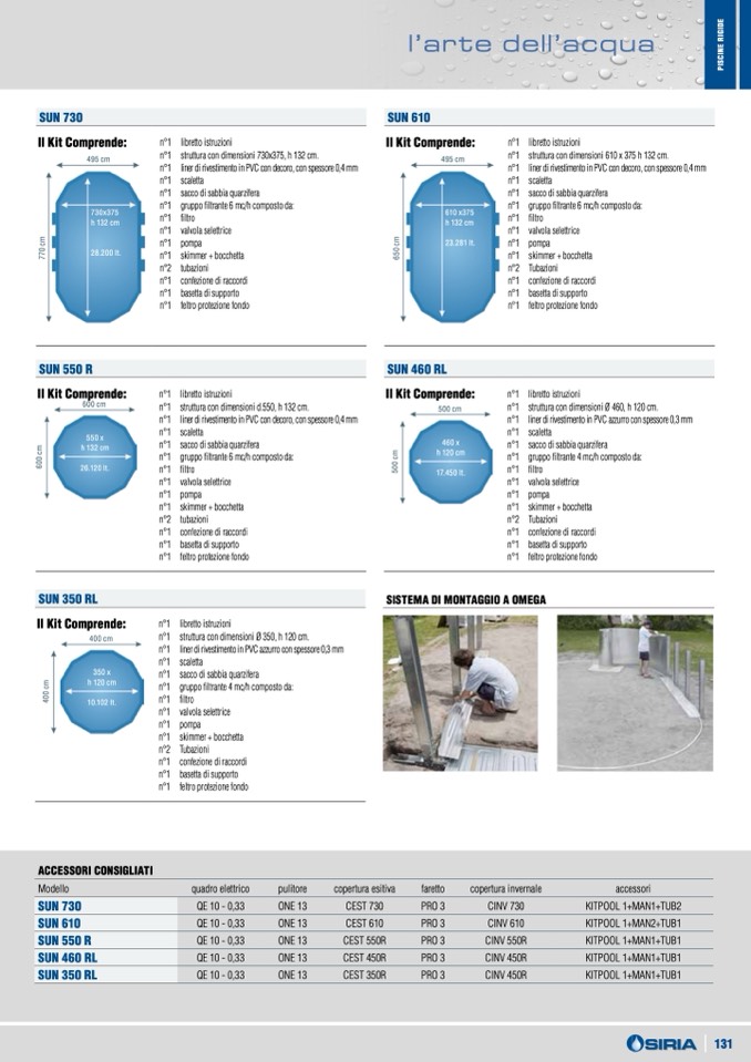 n°1 liner di rivestimento in PVC azzurro con spessore 0,3 mm