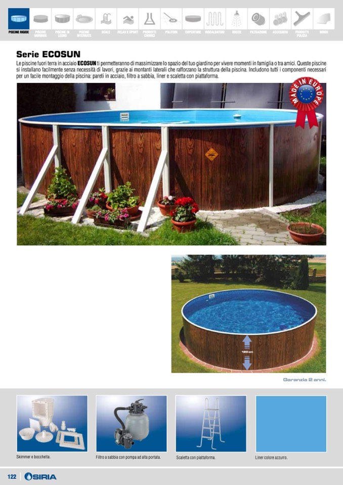 per un facile montaggio della piscina: pareti in acciaio, filtro a sabbia, liner e scaletta con piattaforma.