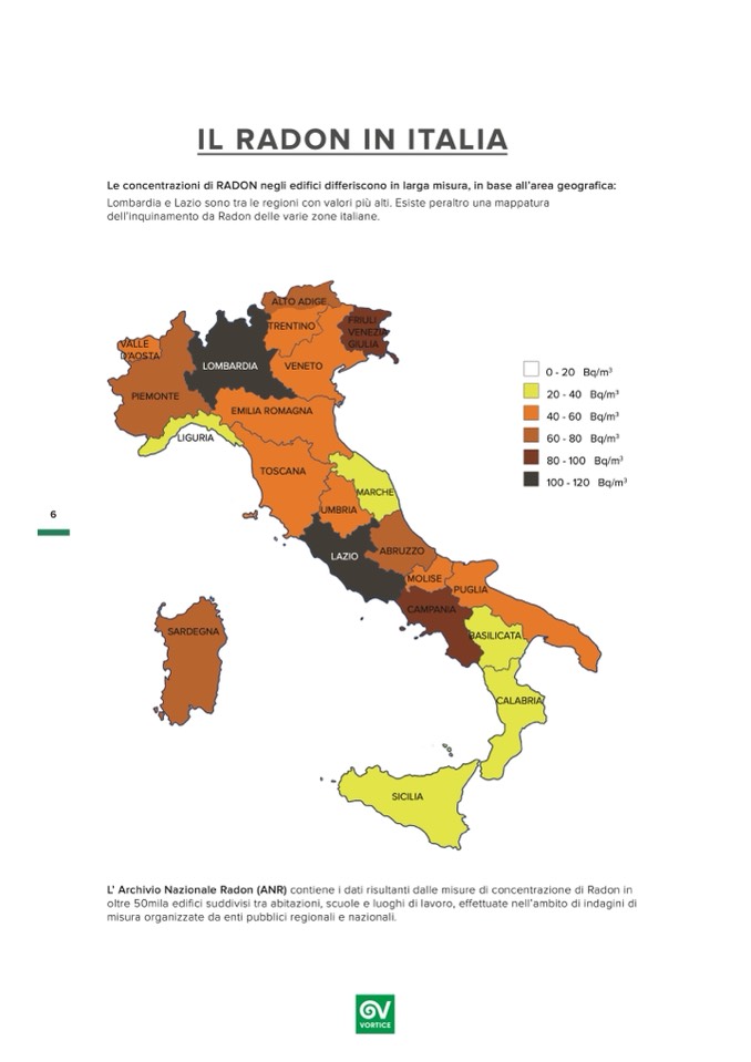 Le concentrazioni di RADON negli edifici differiscono in larga misura, in base all’area geografica: