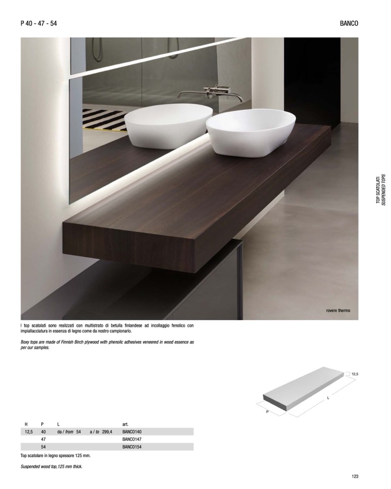 I top scatolati sono realizzati con multistrato di betulla finlandese ad incollaggio fenolico con