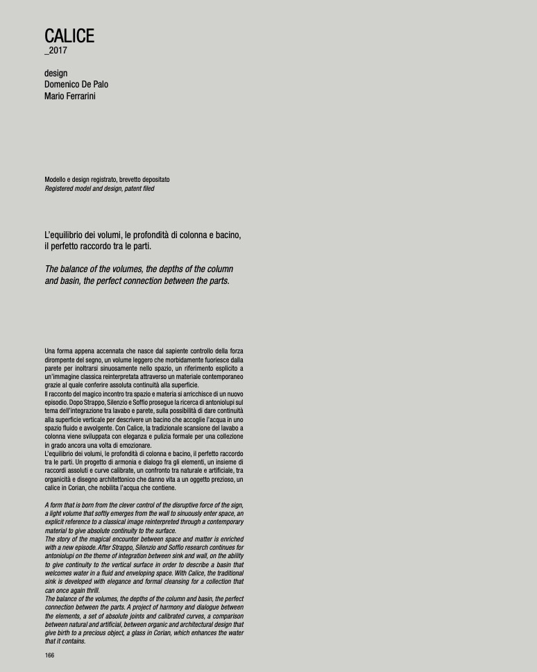 spazio fluido e avvolgente. Con Calice, la tradizionale scansione del lavabo a