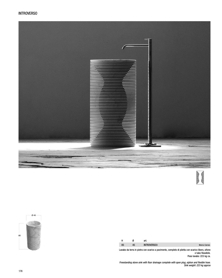 Peso lavabo: 223 kg ca.
