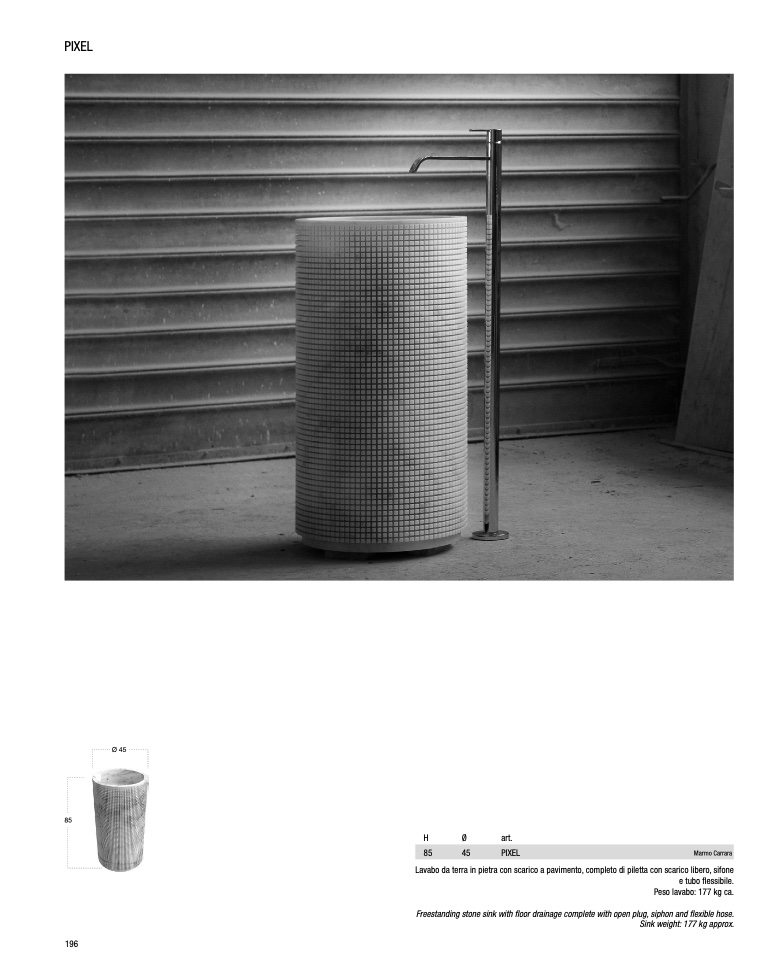 Lavabo da terra in pietra con scarico a pavimento, completo di piletta con scarico libero, sifone