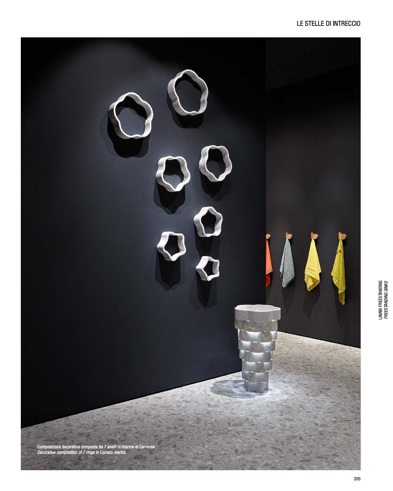 Composizione decorativa composta da 7 anelli in marmo di Carraraw