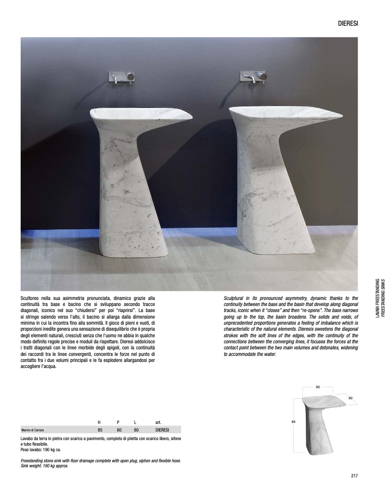 Lavabo da terra in pietra con scarico a pavimento, completo di piletta con scarico libero, sifone