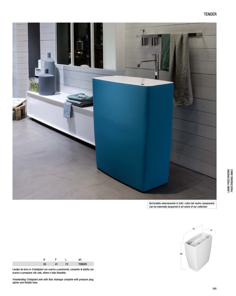 Lavabo da terra in Cristalplant con scarico a pavimento, completo di piletta con
