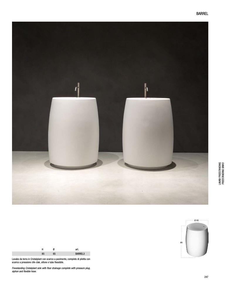 Freestanding Cristalplant sink with floor drainage complete with pressure plug,