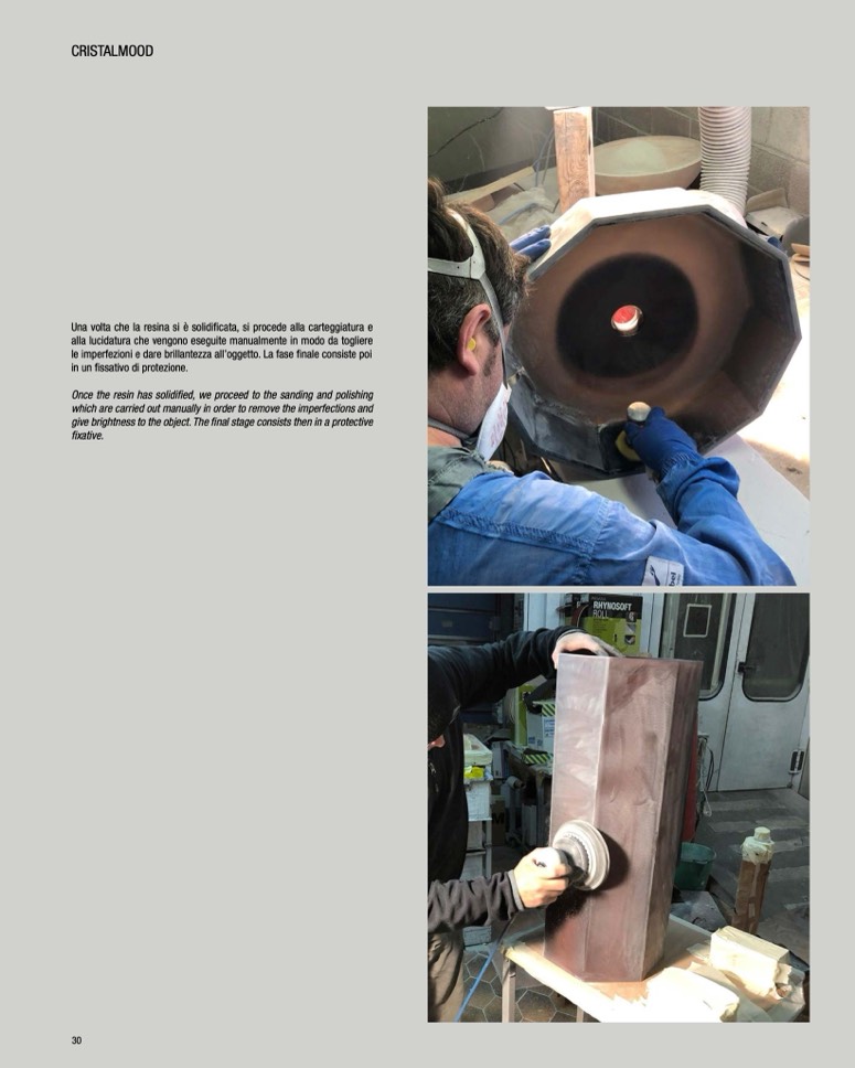 Once the resin has solidified, we proceed to the sanding and polishing