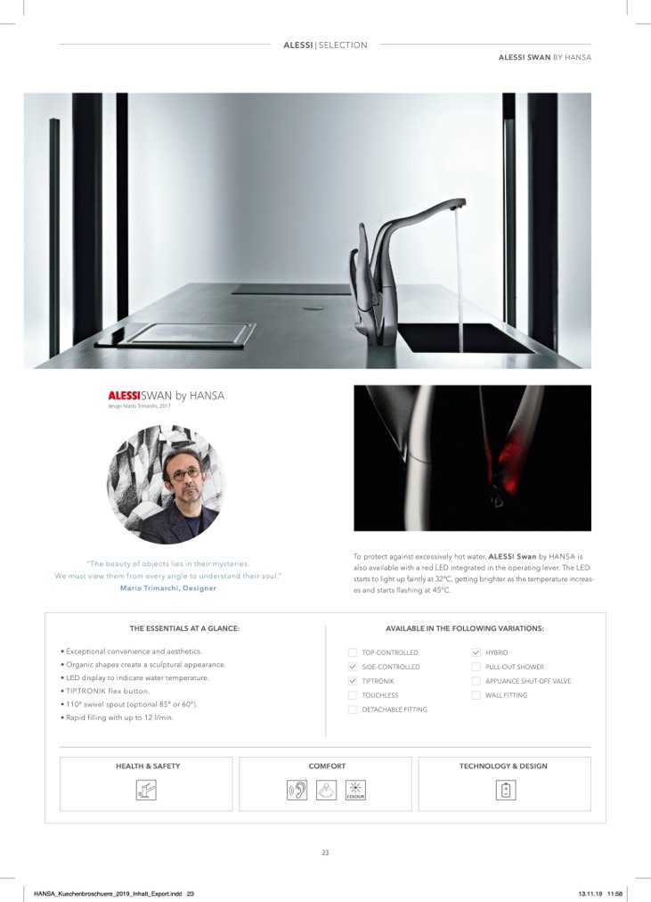 To protect against excessively hot water, ALESSI Swan by HANSA is