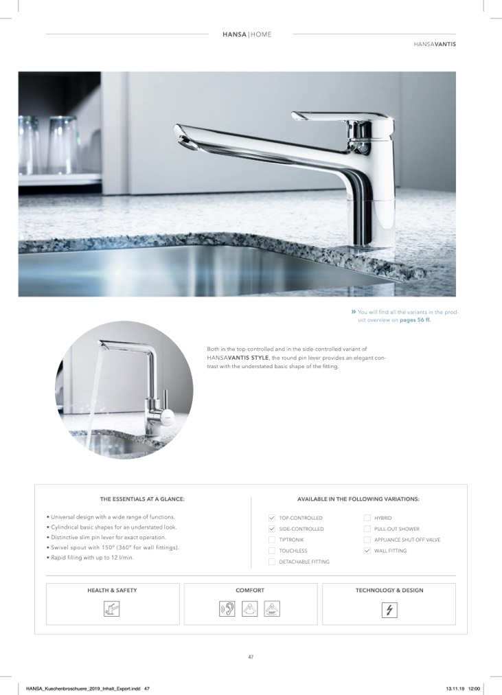 HANSAVANTIS STYLE, the round pin lever provides an elegant con-