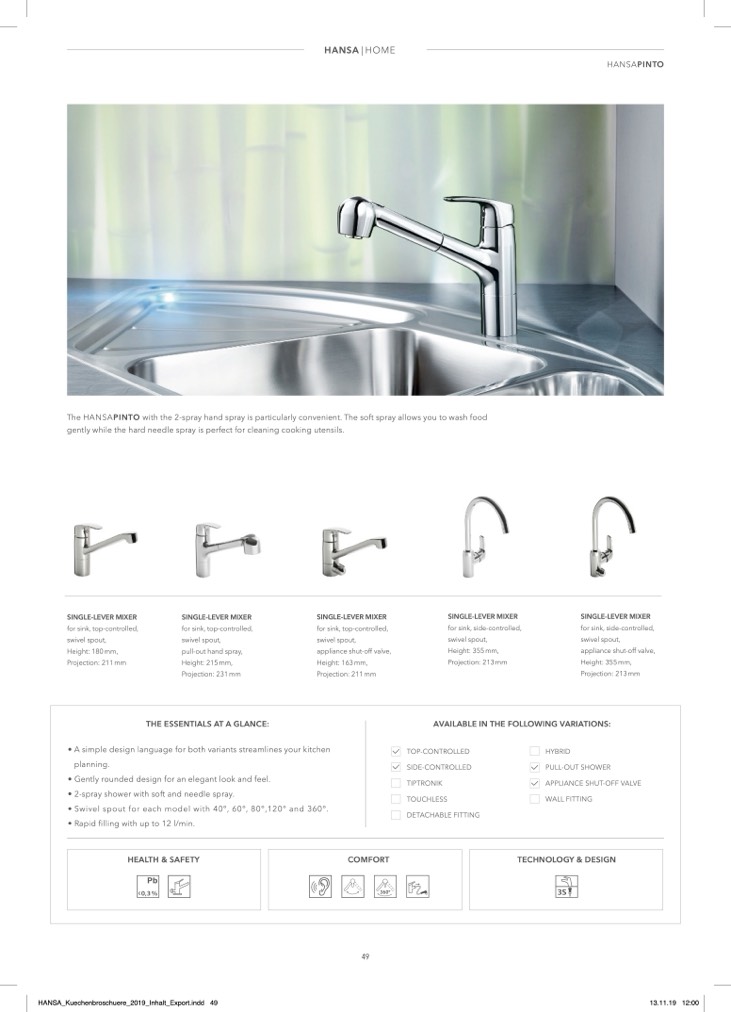 The HANSAPINTO with the 2-spray hand spray is particularly convenient. The soft spray allows you to wash food