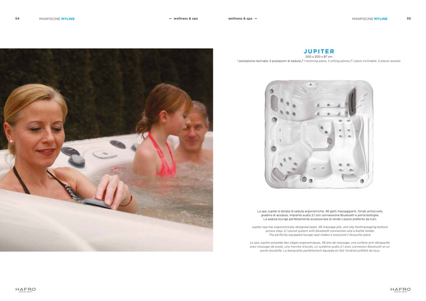 Jupiter spa has ergonomically designed seats, 46 massage jets, anti slip footmassaging bottom,