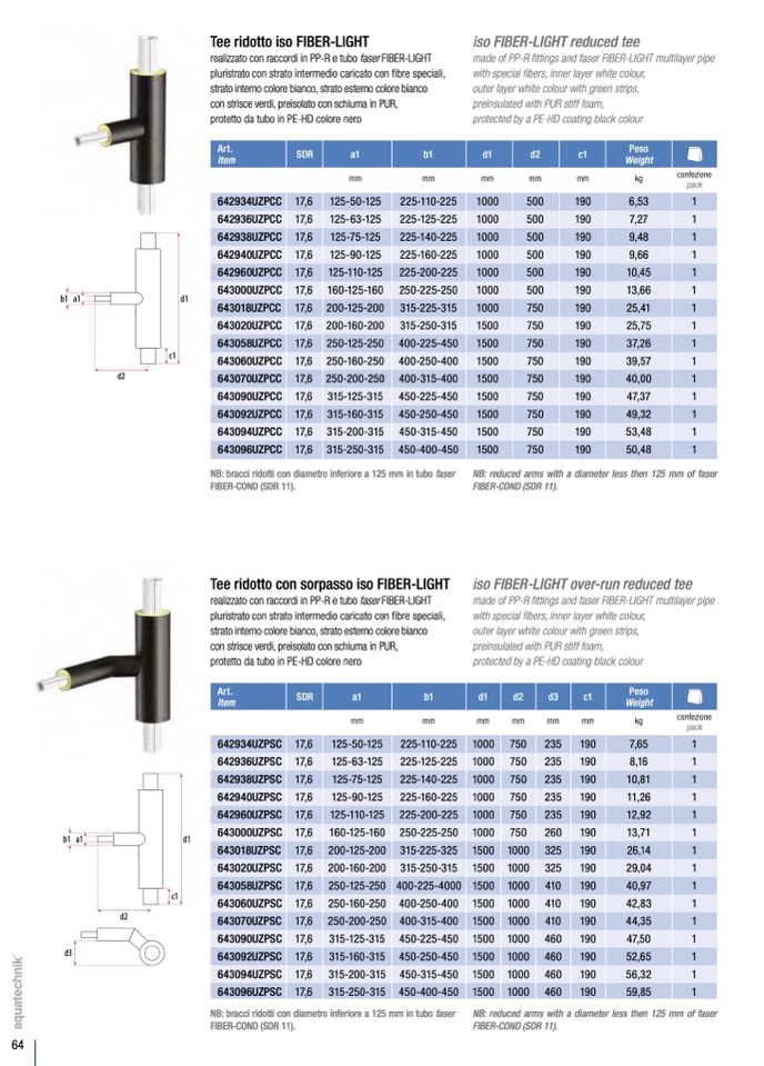 NB: bracci ridotti con diametro inferiore a 125 mm in tubo faser