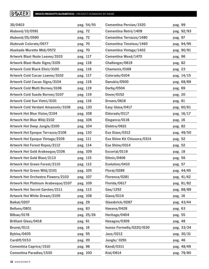 INDICE PRODOTTI ALFABETICO . PRODUCT SUMMARY BY NAME