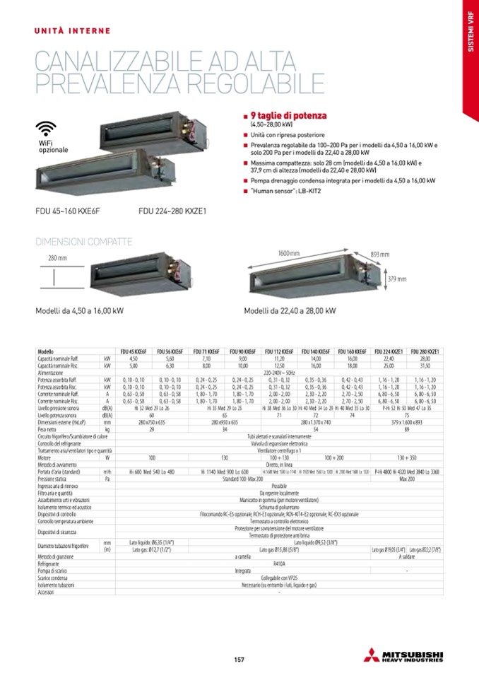 Prevalenza regolabile da 100~200 Pa per i modelli da 4,50 a 16,00 kW e