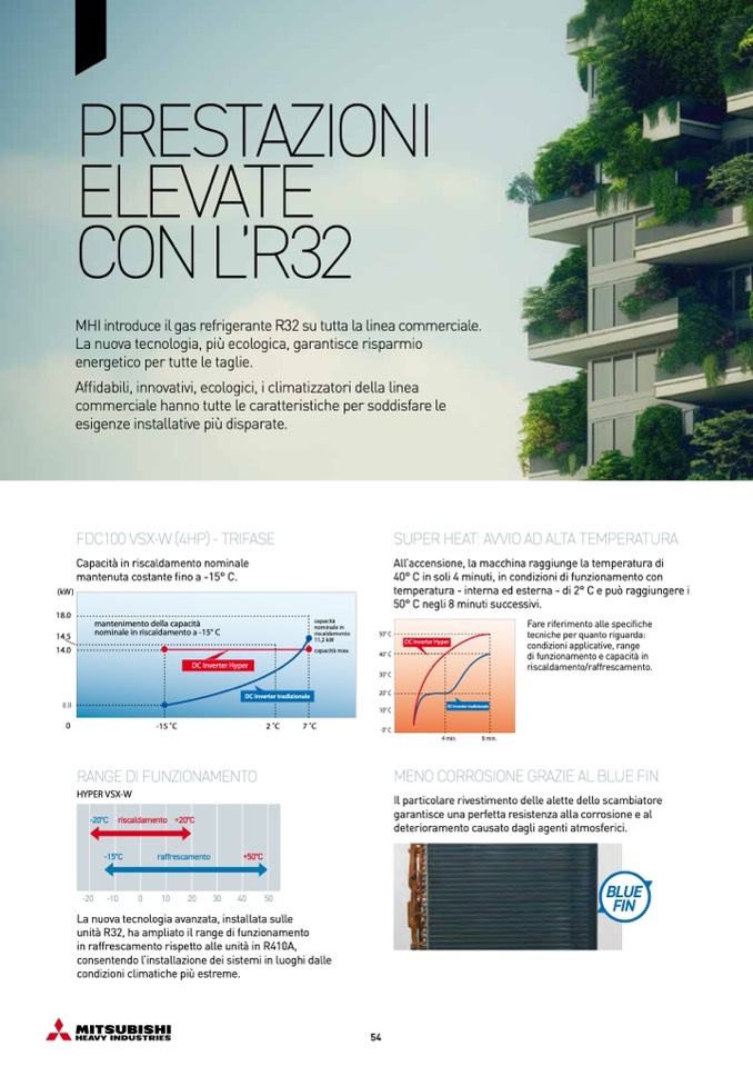 MHI introduce il gas refrigerante R32 su tutta la linea commerciale.