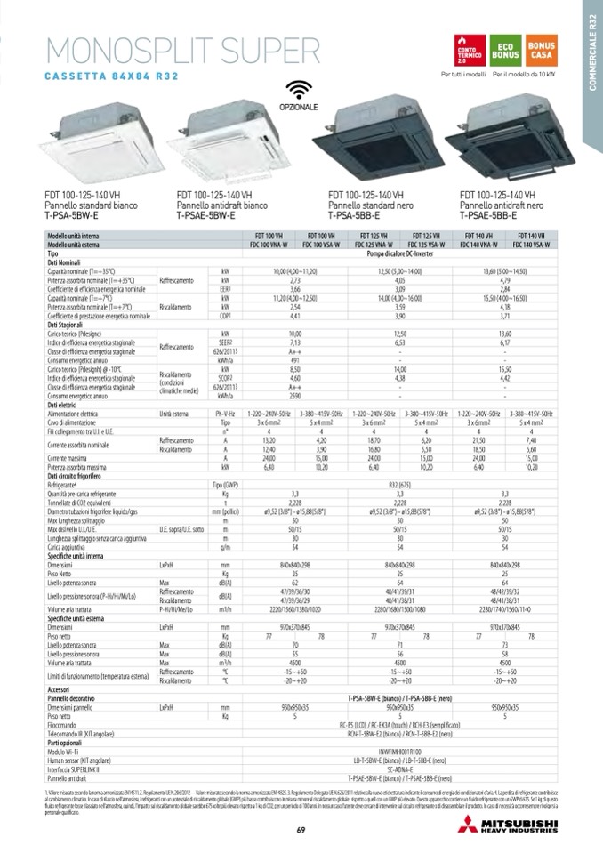 1. Valore misurato secondo la norma armonizzata EN14511. 2. Regolamento UE N.206/2012 - - Valore misurato secondo la norma armonizzata EN14825. 3. Regolamento Delegato UE N.626/2011 relativo alla nuova etichettatura indicante il consumo di energia dei condizionatori d'aria. 4. La perdita di refrigerante contribuisce