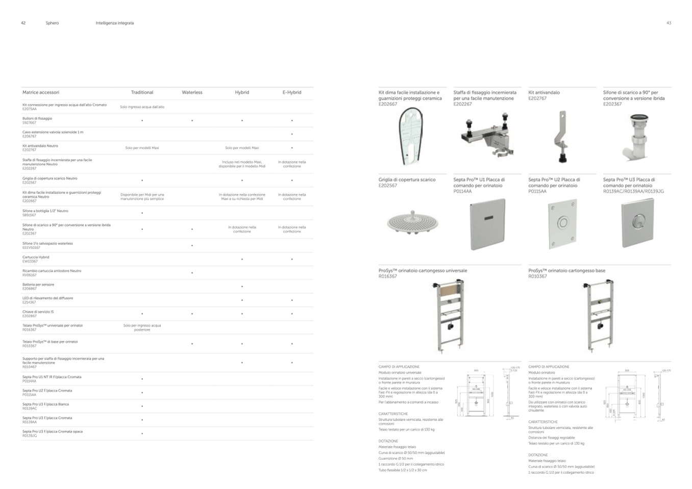 Telaio ProSysTM universale per orinatoi