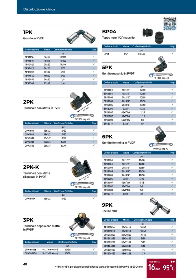 ** PN16 95°C per sistemi con tubo Henco standard e raccordi in PVDF Ø 16-20-26 mm
