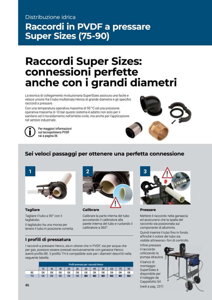 I raccordi a pressare Henco, sia in ottone che in PVDF, sia per acqua che