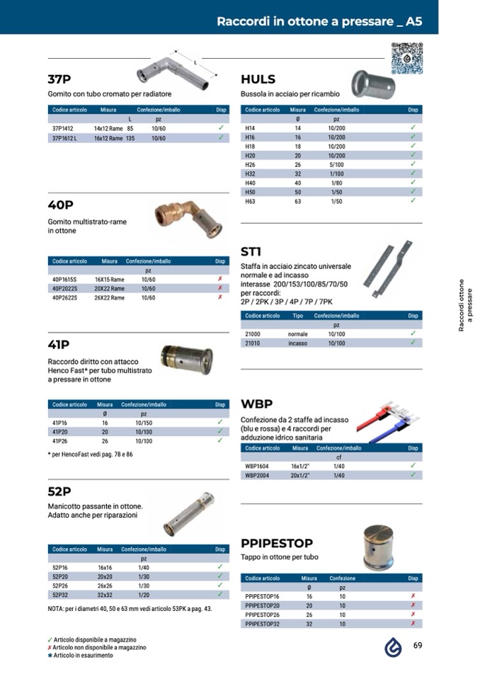 NOTA: per i diametri 40, 50 e 63 mm vedi articolo 53PK a pag. 43.