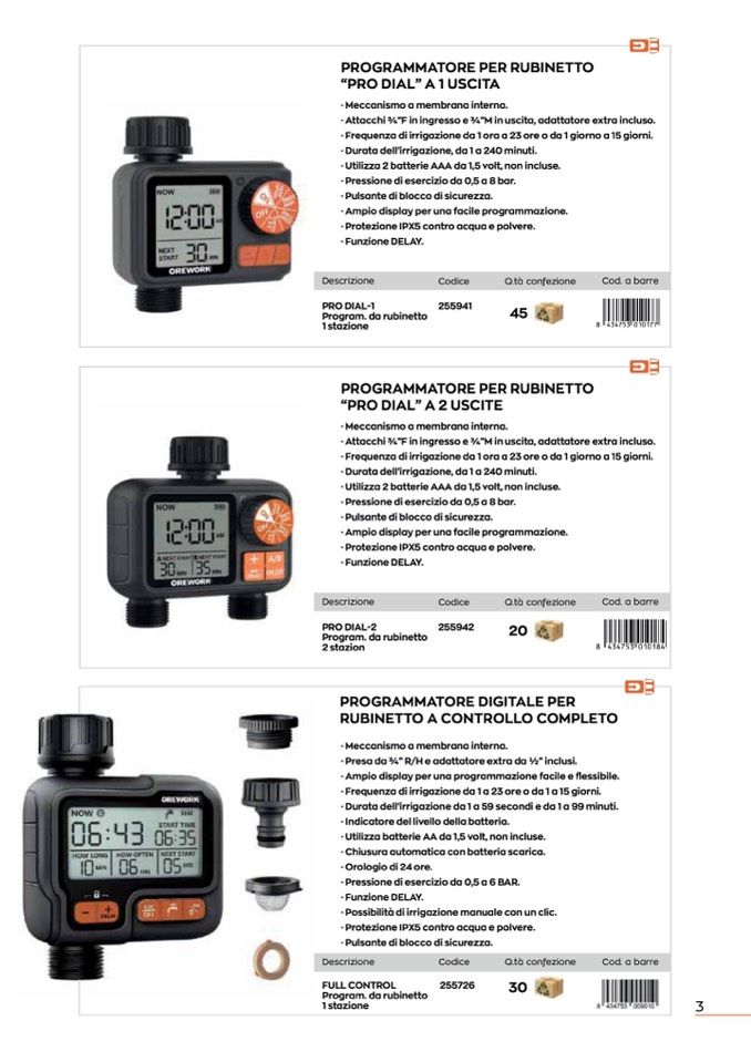 · Durata dell’irrigazione da 1 a 59 secondi e da 1 a 99 minuti.