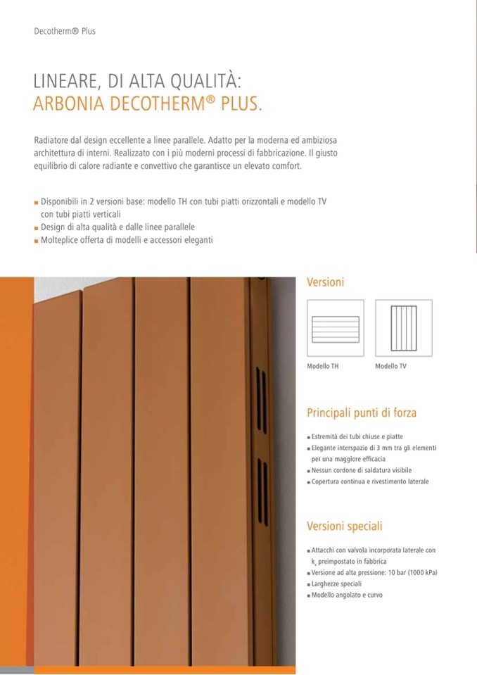 Disponibili in 2 versioni base: modello TH con tubi piatti orizzontali e modello TV