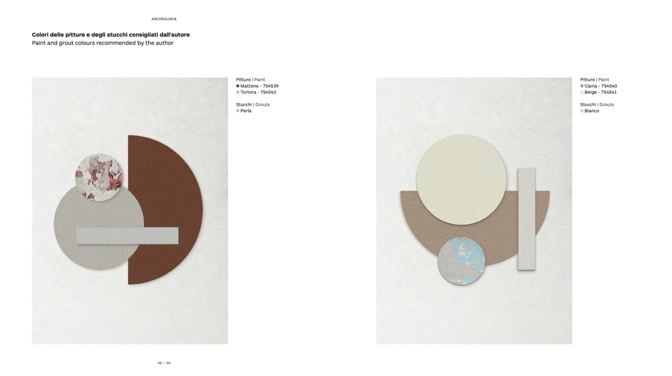 Colori delle pitture e degli stucchi consigliati dall'autore