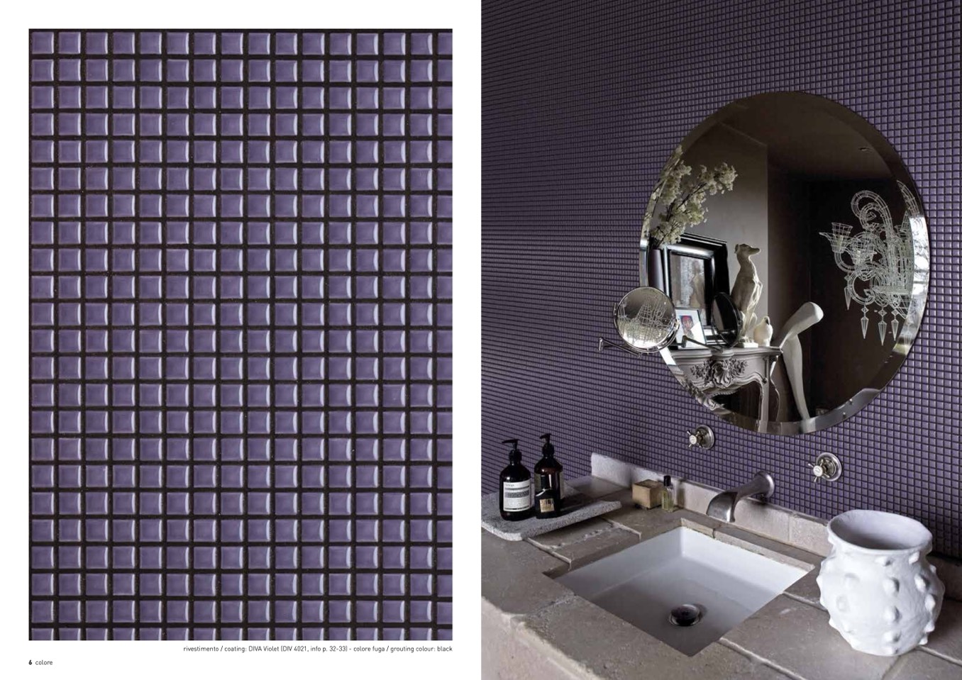 rivestimento / coating: DIVA Violet (DIV 4021, info p. 32-33) - colore fuga / grouting colour: black