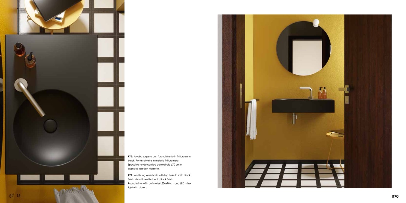 R70: lavabo sospeso con foro rubinetto in finitura satin