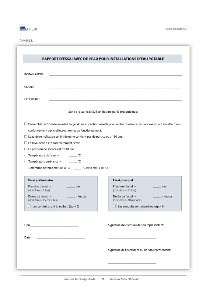 Pression d’essai =