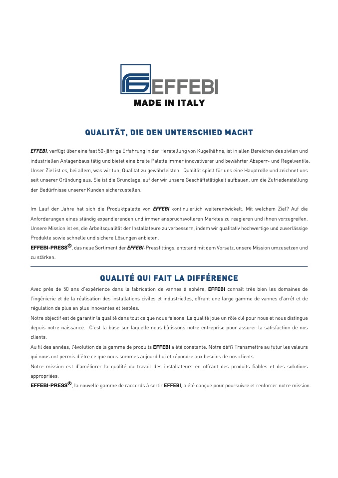 , das neue Sortiment der EFFEBI-Pressfittings, entstand mit dem Vorsatz, unsere Mission umzusetzen und