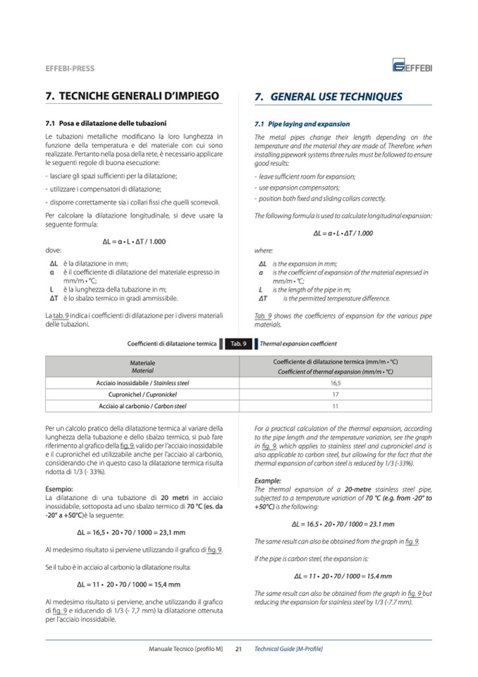 Tab. 9 shows the coefficients of expansion for the various pipe