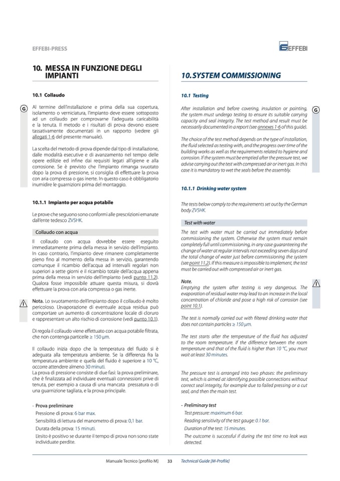 Nota. Lo svuotamento dell’impianto dopo il collaudo è molto