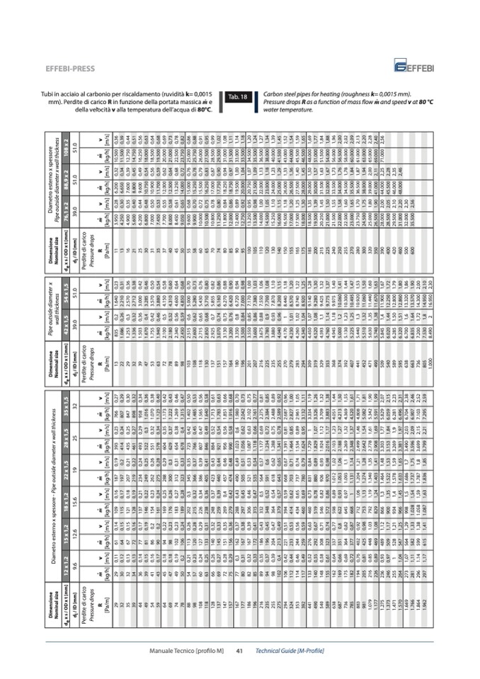 Tubi in acciaio al carbonio per riscaldamento (ruvidità k= 0,0015