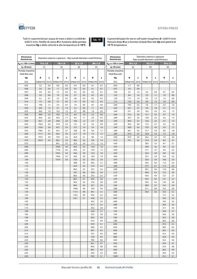 Cupronickel pipes for sea or soft water (roughness k= 0,0015 mm).